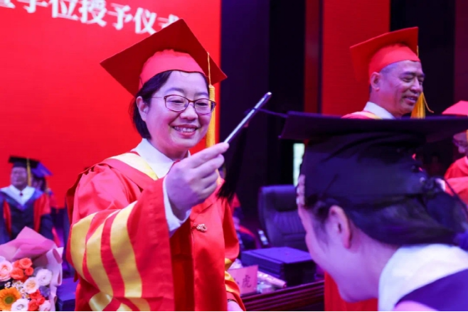 全体校领导为毕业生代表拨穗并颁发学位证书,与2024届毕业生们一起分享毕业时刻的喜悦。