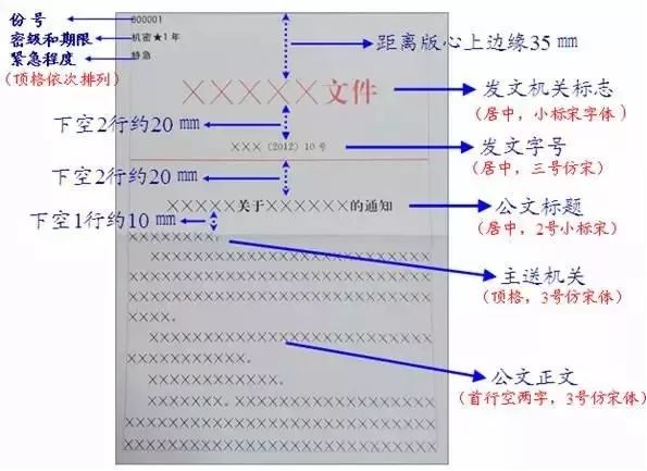 如需标注份号、密级和保密期限、紧急程度,应当顶格居版心左边缘编排在第一条红色双线下,按照份号、密级和保密期限、紧急程度的顺序自上而下分行排列,第一个要素与该线的距离为3号汉字高度的7/8.