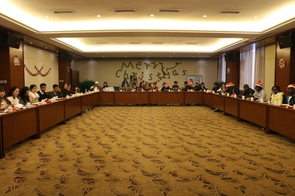 为了让留学生感受到家的温暖,拉近留学生与西昌学院师生的关系,我校办公室于2017年12月22日(冬至日)下午在西昌市锦城观海酒店举办了“西昌学院外事工作会暨2017年留学生圣诞节活动”。参与人员有:西昌学院办公室主任沈良杰、副主任李秀卿,西昌学院教师柳霞、胡峡、杨梅、王亚男、尔扎莫,西昌学院全体留学生,第六届党政办学生助理以及西昌学院优秀学子。  活动第一项:沈良杰致辞 沈良杰对到场人员表示感谢和欢迎,在祝愿大家圣诞快乐的同时还提到:今天也是我国传统节日冬至节,希望大家能够全情融入此次活动,就像家人一样,不要有所拘束。  活动第二项:节目展示 党政办师生一起合唱了圣诞歌曲,各国留学生也带来了他们自己的才艺表演,让大家深入感受了异域风情。 母语歌曲展示:  活动第三项:游戏环节