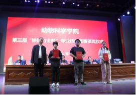 为对比赛中表现优异的学生和团队进行褒奖,学院于4月30日在北校区学生活动中心举办了颁奖仪式,动科学院党委书记孙德刚、院长黄志秋、党委副书记郝桂英、副院长黄增文、教研室主任徐大勇、王思芦、教务科副科长黄毅、大赛点评老师、教师代表以及2022级全体学生参加了颁奖仪式。
