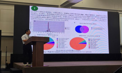 常卫华做“绵羊卵巢特异性oar-mir-214-3p基因的鉴定及生物学功能的研究”的学术报告。常教授详细阐述了研究背景、oar-mir-214-3p基因的筛选过程、oar-mir-214-3p基因的生物学功能,指出oar-miR-214-3p主要定位于细胞质,而且oar-miR-214_3p通过靶向抑制mTOR、Sema4D参与卵巢卵泡的发育、排卵、雌激素的分泌及发情周期的调控。