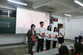 孙德刚对此次活动进行了总结。他赞扬同学们的选材和场上表现催人奋进,令人感动、充满了正能量。作为中华经典,它浓缩了汉语韵律、词章之美,寄寓了中华民族传统的价值追求和审美理想,闪烁着以天下为己任的爱国主义光辉,展现出了自强不息、团结奋进的高尚情怀。他强调,诵读讲解经典,不仅可以拓展知识,还可以滋养心灵;不仅能陶冶情操,锤炼品格,更能传承优秀文化;不仅能感悟思想伟力,更能提高文化自信!他希望今后学院能多举办这样的活动,让更多的同学参与进来。