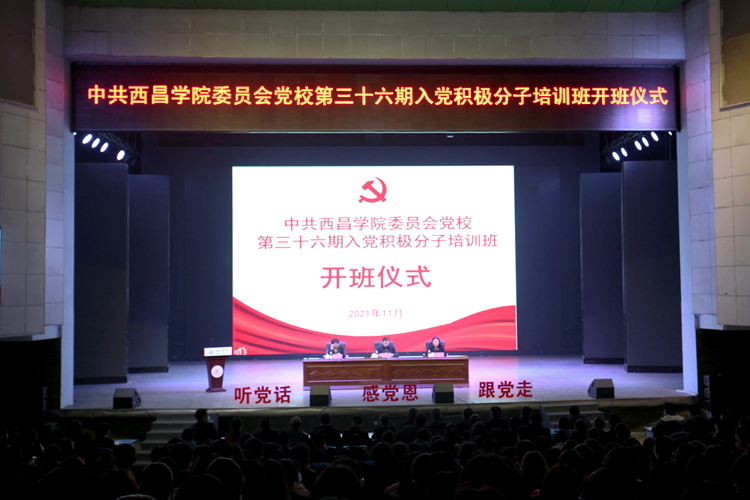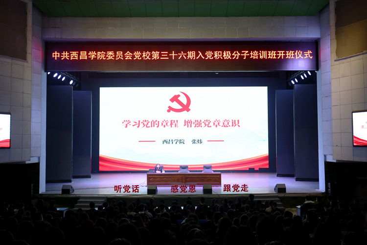 11月28日晚,中共西昌学院委员会党校第三十六期入党积极分子培训班开班仪式在北校区学生活动中心举行。党委副书记杜正聪,党委常委、副校长、组织部长张炜,党委常委、宣传部、统战部部长沈良杰,党建办负责人,各二级单位党委(党总支部)书记、副书记,学生党支部书记参加开班仪式。开班仪式由张炜主持。  开班仪式上,杜正聪对学员们提出四点希望:一要了解党、认识党,始终坚定永远跟党走的信念;二要树立正确的世界观、人生观和价值观,始终保持先进性;三要加强学习,练就过硬本领,积极投身新时代伟大实践;四要严守纪律,勇于担当,力争早日成为一名光荣的中国共产党员。  入党积极分子学员代表邢李欢发言。  开班仪式结束后,张炜为参训学员讲授了题为《学习党的章程,增强党的意识》的党课。 文/组织部 图/党委宣传部融媒体中心 卢余萍 实习记者/张尧 |