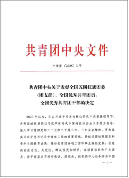 近日,共青团中央下发《共青团中央关于表彰全国五四红旗团委(团支部)、全国优秀共青团员全国优秀共青团干部的决定》(中青发〔2025〕3号),我校团委荣获“全国五四红旗团委”荣誉称号。
