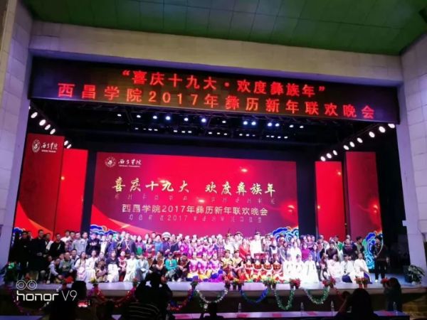 2017年11月17日晚,以“喜庆十九大,欢度彝族年”为主题的西昌学院2017年彝历新年联欢晚会在学生活动中心完美落幕。 晚会以彝族歌曲《过年好》开场,来自彝族文化协会彝族乐队的几名小伙子用自己的热情点燃了全场气氛。  随后主持人上台介绍了出席本次晚会的嘉宾,接下来就是精彩节目的呈现了,让小编带你一起去感受当晚的精彩吧。 首先是由舞蹈协会带来激情四射的现代舞蹈《DNA》,舞协的小伙伴让我们从开场古朴的彝族文化一下子感受到了现代舞蹈艺术的激情。  紧接着是红十字志愿者协会带来幽默风趣的小品《列车奇遇》,同学们看到在列车上因为座位做错带来的一系列故事,个个笑得前仰后合。  然后是彝族文化协会的姑娘们给我们带来的舞蹈《你是一首歌》,舞蹈讲述了彝族女性辛勤的一辈子,让大家感受到了彝族文化中关于女性的柔美。  随后是太阳文学社带来的歌舞剧《长恨》,接下来就是令人激动的互动环节。互动环节由主持人提问,观众回答正确即可领取礼品,此过程中全场沸腾,观众积极回答问题并送上自己的祝福,当中还不乏外国友人的参与和祝福,当然互动关注还获得了手镯、酒杯、服装等彝族特色礼品。 其后精彩节目继续,由彝族协会带来的小品《过年》,展现了彝家过年的习俗及特色。武术协会震撼人心的表演《精武魂》,体现了武术之精魂。随后有着火一般热情,酒一般风情的彝族同胞带来舞蹈《七月火把节》,展现了浓浓彝家风采。最后压轴的节目是彝汉神韵的《彝汉走秀》,美丽的服饰,配着彝汉特色音乐,让人清晰了解民族服装色彩。最后集体拍照谢幕。   本次联欢晚会充满着欢乐,主持人全程双语主持,展现了彝族同胞的热情,促进了各族间的友谊,让更多人了解彝族风俗特色。(图:范洁渟 苏文艳,文:沈华) |