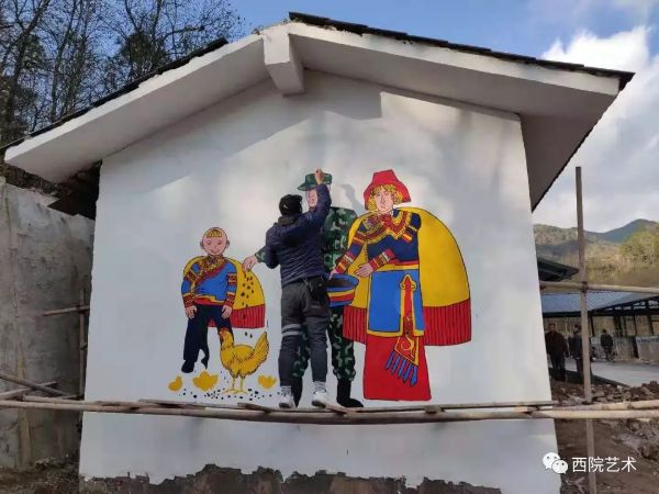 2018年11月12日—16日,艺术学院志愿者团队万江老师带领2015级美术学专业的李永珊同学前往昭觉县四开乡梭梭拉达村开展乡村壁画美化活动,送艺术下乡暖人心,借妙笔助推我院艺术扶贫工作的开展。