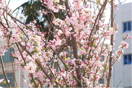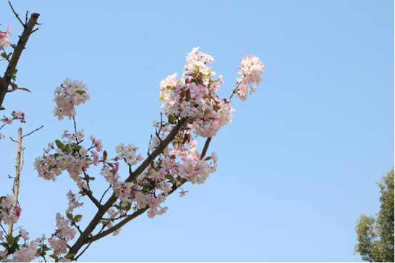 一年之计在于春,当寒冷的冬季悄然退去,春天的脚步便轻盈地踏进了大地,万物复苏,草木欣欣,红的、粉的、白的,色彩斑斓,点缀着春天的画卷。经济管理学院师生共建林中的海棠,弥漫着泥土的芬芳和花朵的清香,令人心旷神怡,为校园增添浓浓春意,有的含苞待放,有的满月盛开,远远望去一片粉红,灿若云霞。春日暖阳下,轻盈的花枝随风飘荡,纷披婉垂,清丽婉约,花姿优美。走在校园步道上,置身花海,花香扑面而来,沁人心脾。