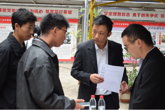 为促进人才培养与高校毕业生就业的紧密衔接,汇聚优质人才资源,助力毕业生实现高质量就业。2025年5月10日,经济管理学院2025届春季双选会于博远楼举行,学院党委副书记冉龙舞、学生科科长钟业举及毕业班辅导员参加了本次双选会,活动通过企业宣讲、简历投递、面试和校企座谈四大环节,为毕业生与企业搭建高校沟通桥梁。