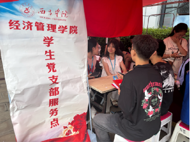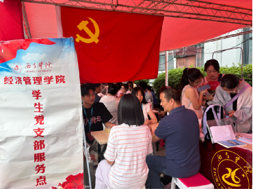 金秋送爽,青春启航,我校迎来2024级新生入学报到。为充分发挥学生党支部的先锋模范作用和基层党组织的战斗堡垒作用,保障新生入学各项工作顺利进行,经济管理学院学生党支部在学院迎新接待处设立了党支部服务岗,围绕报到引导、物资发放、校园导览等服务内容,开展了“喜迎新生,携手前行”的志愿服务活动。
