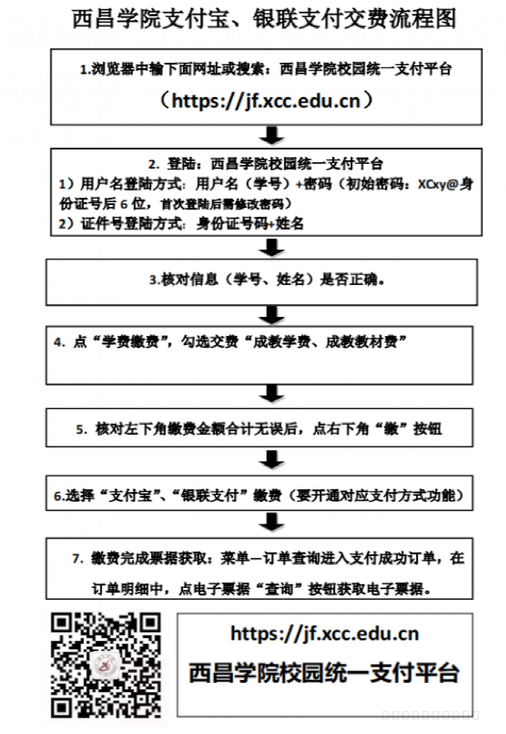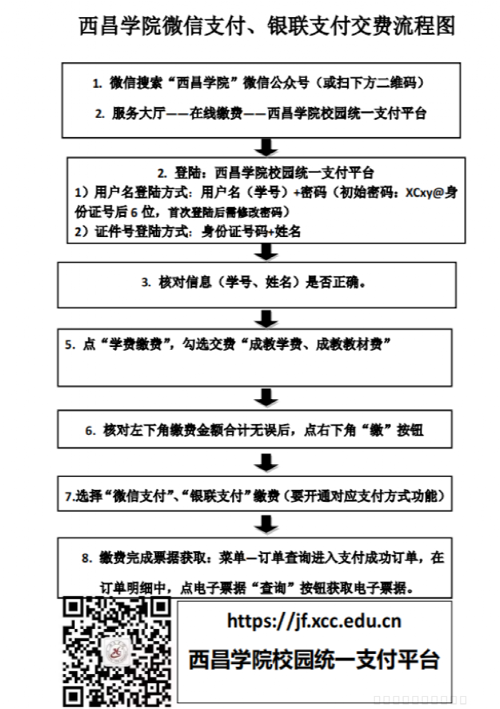 西昌学院高等学历继续教育学费缴纳的温馨提示