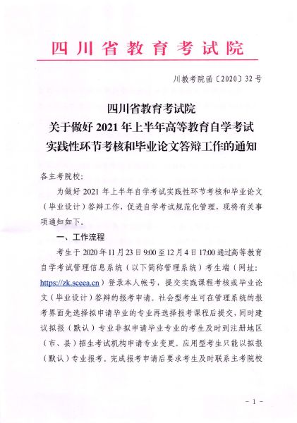 关于做好2021年上半年高等教育自学考试实践性环节考核和毕业论文答辩工作的通知_页面_1