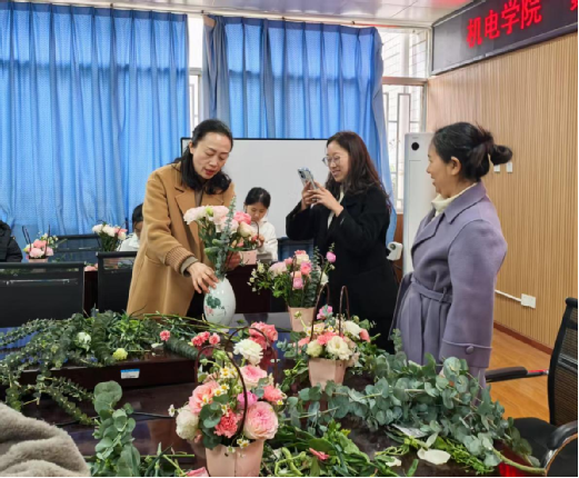 为彰显新时代女大学生柔韧自强、自信独立的精神风貌,助力学生全面成长成才,2025年3月6日,机械与电气工程学院举办“繁花映佳人,师恩润心田”插花艺术活动。我院女教师与女同学代表齐聚一堂,共同体验花艺之美。活动中,师生互动频频,笑语盈盈,在花香中传递温暖与力量,展现了学院和谐共进的氛围。