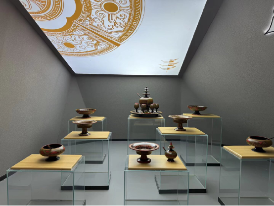 馆内漆器色彩鲜艳,红、黄、黑三种颜色相互交织