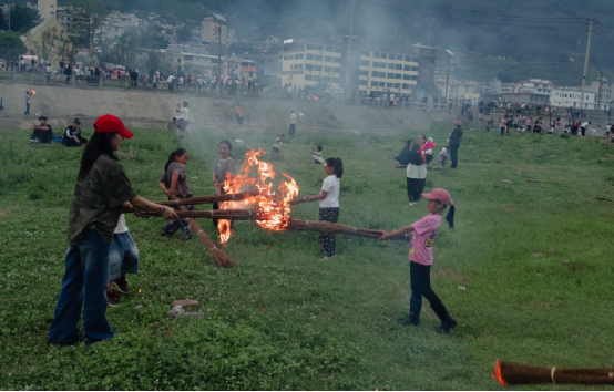 恰逢喜德火把节的最后一天,傍晚,男女老少皆抱着一捆干柴