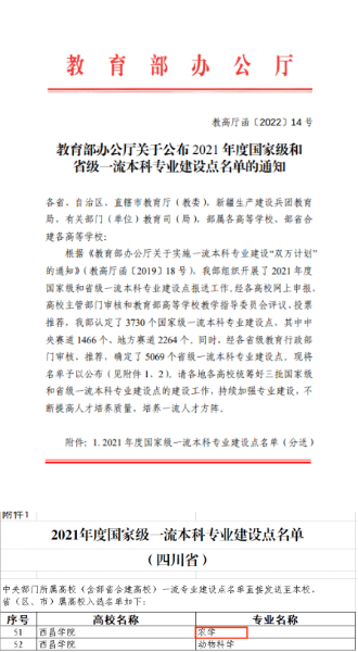 • 1.2022年农学专业获批国家级一流本科专业建设点