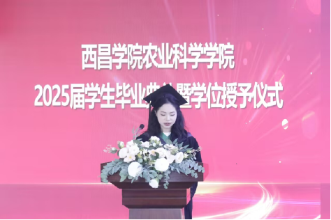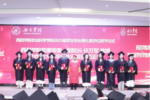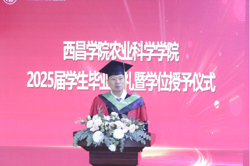 农业科学学院纪委书记、党委副书记胡建平宣读了2025届优秀大学毕业生表彰决定。西昌学院党委常委、副院长任万军教授为他们颁发荣誉证书,表彰他们在学术科研、志愿服务和创新创业等方面的突出表现。这些荣誉证书不仅是对他们过去四年努力的肯定,也寄托了母校对他们未来的期望。