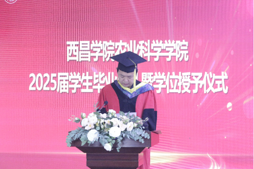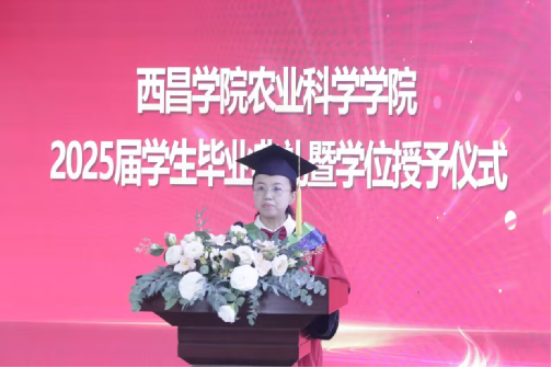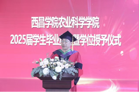 2025年6月17日上午9时,西昌学院农业科学学院2025届学生毕业典礼暨学位授予仪式在致知楼环形报告厅隆重举行。西昌学院党委常委、副院长任万军教授受邀出席。农业科学学院党委书记严光文主持仪式,院长李静、纪委书记、党委副书记胡建平、副院长李佩华以及学校团委书记董华芳教授、攀西特色作物研究与利用四川省重点实验室常务副主任张文友教授等教师代表、全体毕业生和在校生代表共同见证了这一重要时刻。
