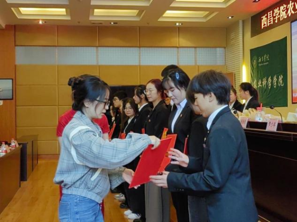 大会第二项,正式进行选举大会。首先由2021级烟草专业1班杨杰同学宣读《西昌学院农业科学学院第十四届学生代表大会选举办法》。随后由工作人员介绍候选人基本信息,同时,候选人依次上台致敬,由学生代表投票选举,选出新一届学生干部。最后老师为即将离任的学生干部颁发聘书。