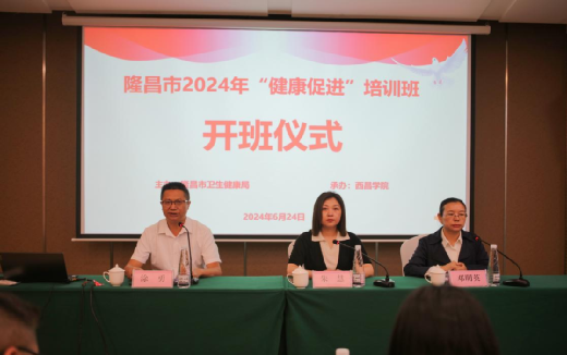 2024年6月24日上午,隆昌市2024年“健康促进”培训班在西昌顺利开班。隆昌市人民政府副市长朱慧,西昌学院继续教育学院院长、培训中心主任涂勇,西昌学院继续教育学院副院长、培训中心副主任邓明英以及全体学员出席了本次开班仪式。开班仪式由邓明英主持。  涂勇向各位参训学员表示热烈欢迎,并介绍了西昌学院的发展历史、学校概况以及优势特色,同时希望学员珍惜培训机会,潜心学习,将学习培训的成果转化为提升工作质量的实际成效,为隆昌市营造健康环境、优化健康服务、强化健康教育等工作添砖加瓦。  朱慧对西昌学院为本次培训的课程设计和精心安排表示衷心感谢。同时对参训学员提出三点要求。一是要深入思考,力求学有所获、学有所成;二是要强化学用结合,增强工作成效;三是要提高纪律意识,做到作风严实。  本次培训旨在进一步提升隆昌市健康相关工作骨干人员的工作意识和素养,推动健康行为的养成,为促进个人和社区的健康发展、鼓励更多人主动参与健康促进的具体实践发挥积极作用。  |