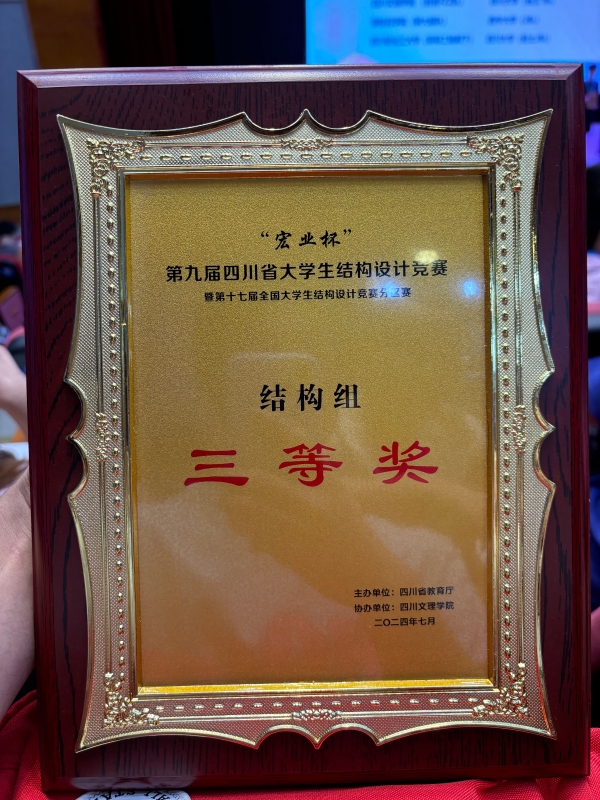 2024年7月6至9日,由四川省教育厅主办、四川文理学院承办的第九届四川省大学生结构设计竞赛暨第十七届全国大学生结构设计竞赛分区赛在四川文理学院举行。来自四川大学、西南交通大学、四川农业大学等川内外高校的七十余支参赛队伍,共二百余名参赛选手进行了为期四天的激烈比赛,各参赛队伍激烈角逐、尽显川内土木学子风采。  我院五位老师,共带领12名学生组成结构组和岩土组各2支队伍参加比赛,其中,经过同学们的激烈拼搏,我院结构组获得两个三等奖,岩土组获得一个三等奖,为我院增添光彩。  此次比赛,川内各兄弟院校齐聚达州城四川文理学院,赛出川内土木学子的濯濯风采、赛出各高校土木工程的专业魅力、赛出川内土木院校的丝扣相连。热烈祝贺大赛取得圆满成功!热烈祝贺土木与水利工程学院学子们再创佳绩!期待明年大家相聚成都大学,延续和传承比赛! |