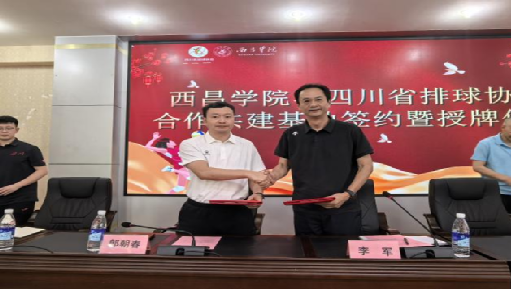 为全面落实立德树人根本任务,为党育人,为国育才。深入贯彻落实国家体育发展战略,推动排球运动在高校的普及与发展,培养优秀排球人才。2025年6月17日,我院与四川省排球协会合作共建基地签约暨授牌仪式在至真楼学术报告厅成功举行。四川省排球协会理事长李军、副秘书长白耀东、办公室干事贾沁霖;我院党委书记马吉勋、院长郎朝春、副院长韩勇、体育学院全体教师及部分学生代表参加仪式。仪式由马吉勋主持。