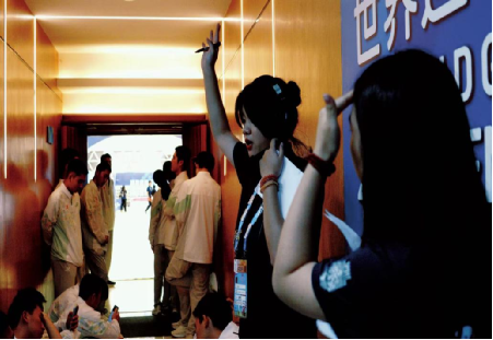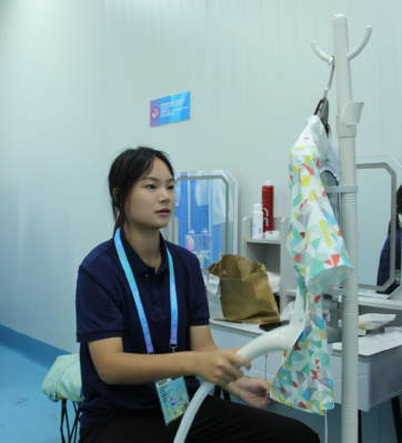 张一萍同学在为颁奖礼仪们熨烫衣服