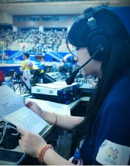 室内荷球项目比赛的顺利进行,离不开舞台监督的精心协调。吴镁洁和熊华鑫同学共同担任此职,负责从赛前场地布置、设备调试,到赛中流程把控、应急处理的全部环节。为更好地服务国际运动员,他们努力提升英语口语,确保沟通高效无误,保障了赛事流程的顺畅。