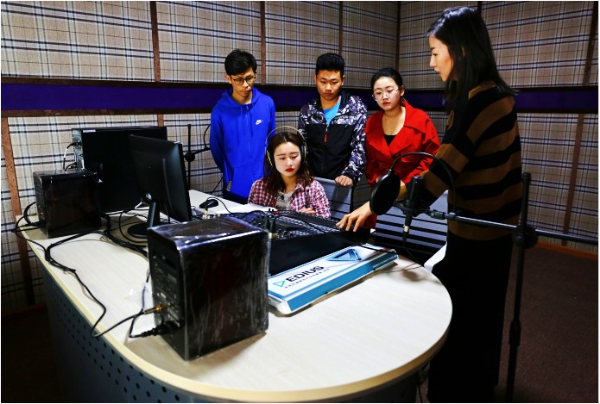 播音配音实训室位于传媒实训中心,按照专业配音要求装修,隔音明显,静谧整洁。