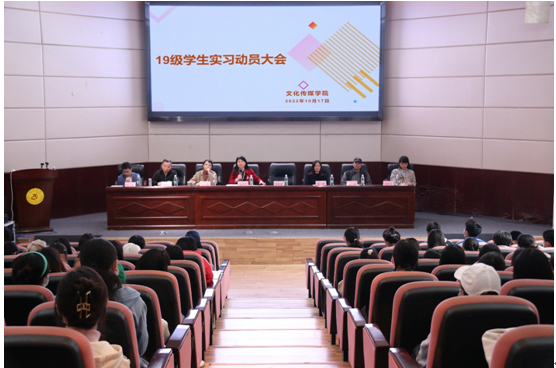 2022年10月17日下午,文化传媒学院在敏行楼学术报告厅举行了2019级汉语言文学专业学生集中实习动员大会。文化传媒学院党委副书记谭时康,文化传媒学院副院长张富翠,实训中心主任王艺,汉语言文学教研室主任陈燕,辅导员代晨以及实习带队老师曾国全、周献和聂海燕参加了此次会议。会议由副院长张富翠主持。