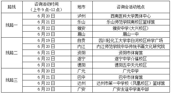 别着急!为了给考生提供更加精准的服务,6月19日到23日,四川省高等教育学会招生考试研究专委会联合四川51所本科招生院校将开展招生咨询公益服务活动,51所四川本科招生院校招生组将奔赴13个市,招生老师将与考生、家长面对面咨询交流,帮助考生了解高校招生政策、专业优势和办学特色,指导考生选择心仪的高校与专业,科学填报志愿。