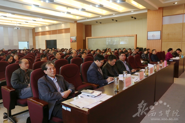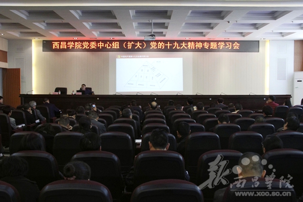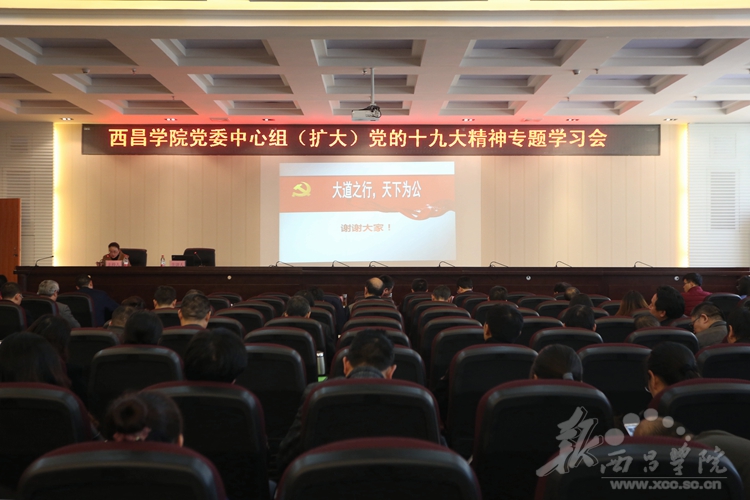 11月14日,我校于北校区图书馆学术报告厅召开西昌学院党委中心组(扩大)党的十九大精神专题学习会。学校党委副书记、院长彭正松,党委常委、副院长陈小虎、胡金朝、曲木伍各、徐静,以及全校副科级以上干部参加了学习会。本次学习会由徐静同志主持。
