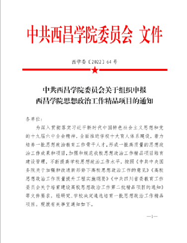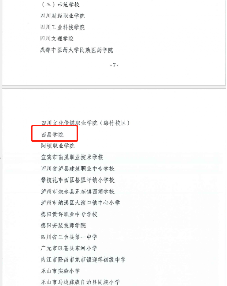 近日,四川省民族宗教事务委员会、中共四川省委宣传部、中共四川省委统战部发布了关于命名第七批四川省民族团结进步示范区示范单位及五年期满复核通过对象的决定,西昌学院被命名为第七批四川省民族团结进步示范学校。