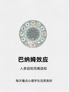 巴纳姆效应指的是人们常常倾向于接受那些一般性的、笼统的人格描述,认为其特别适合自己。比如,“你有时很外向,善于交际,但有时又喜欢独处,享受宁静”,这样的描述似乎适用于大多数人,但我们却容易觉得这就是对自己的精准刻画。