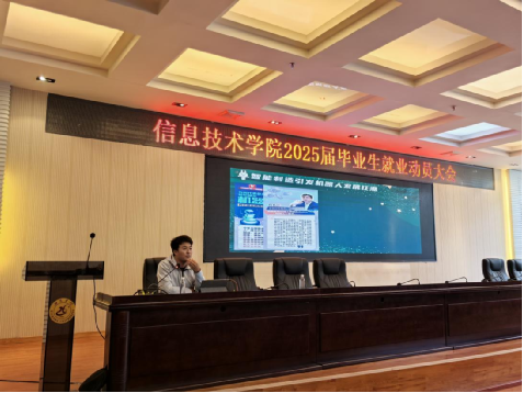 10月18日下午16:30,信息技术学院在图书馆报告厅隆重召开了2025届毕业生就业动员大会。此次大会旨在为即将步入社会的毕业生们提供全面而深入的就业指导和支持,帮助他们更好地应对就业市场的挑战,实现个人职业发展的新突破。