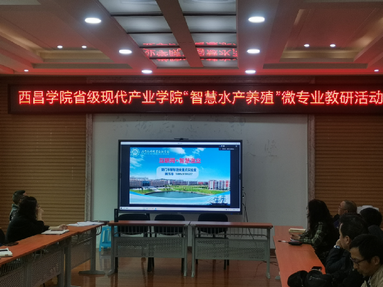 本次教研活动分为“智慧水产养殖”微专业团队成员研讨设计课程教学内容、厦门海洋职业技术学院厦门智慧渔业重点实验室魏茂春教授讲授“互联网+智慧渔业”讲座及现场参观动物科学学院校内产教融合创新创业基地三个部分。