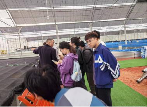 在实践基地,庞新军、李剑佩、陈辉、李驰等工程师向学生讲解了鲈鱼养殖环境要求及相关设施,学生向工程师们详细了解了鲈鱼智慧养殖的需求并进行深入交流。