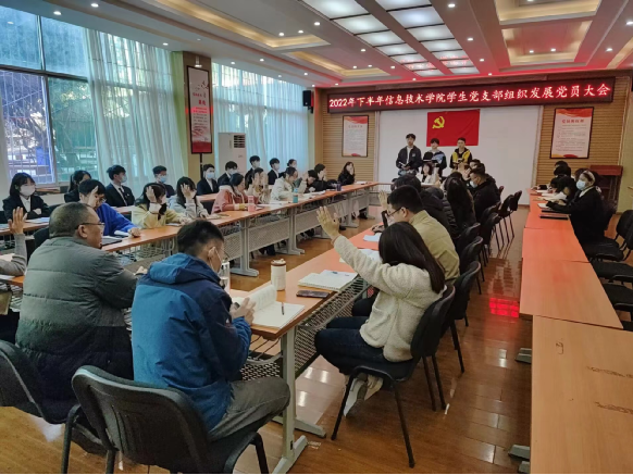 学习二十大,永远跟党走,奋进新征程。为了壮大党员队伍,全面提升党员发展质量,把先进优秀青年聚集在党的旗帜下,为实现中华民族伟大复兴而共同奋斗。信息技术学院学生党支部于2022年11月28日中午12:30在致远楼一楼会议室,开展了2022年下半年拟发展党员支部讨论大会。