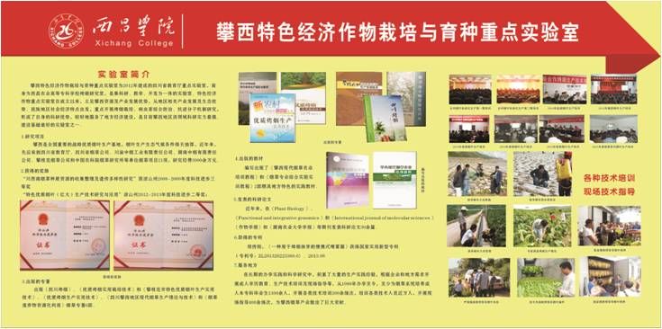 积极加强科研平台建设,现建有各类科研平台10余个,其中四川省高等学校重点实验室、工程研究中心9个(高原及亚热带作物实验室、攀西特色经济作物育种与栽培实验室、四川南亚热带水果技术创新实验室、四川苦荞麦实验室、四川攀西动物疫病检测与防控实验室、四川高原湿地生态与环保应用技术实验室、四川地方特色山羊实验室、四川马铃薯重点实验室、四川马铃薯工程技术中心),与四川大学联合共建实验室1个(马铃薯功能基因组及应用联合研究室)。同时建有高原及亚热带作物研究所、动物科学研究所等2个校级科研所。