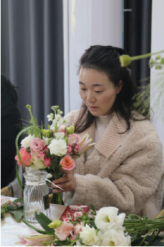 活动中,花艺协会会长潘呷呷莫详细讲解了花瓶插花的花材选择、色彩搭配、造型设计等基本知识和技巧,大家听得津津有味、专注认真。随后,她现场示范了花瓶插花的步骤。讲解结束后,大家开始动手尝试,经过1个多小时的创作,一个个精美的花瓶插花作品于巧手中诞生。大家纷纷与自己的作品拍照留念,脸上洋溢着满足和喜悦的笑容。
