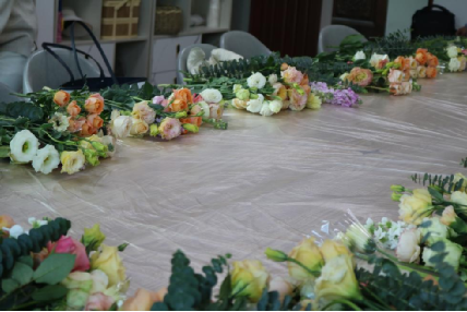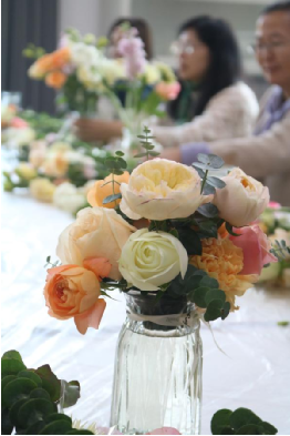 花艺协会召集志愿者精心安排组织了此次活动。提前筹备,讨论策划,从活动流程设计、花材资材准备、作品设计、现场布置等方面有序开展了大量细致的工作。