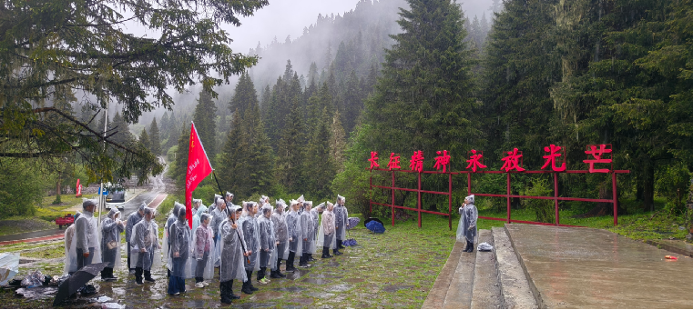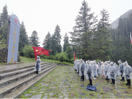 在红原县刷经寺镇,学员们克服高寒缺氧,冒雨步行来到海拔3500多米的亚克夏山工农红军烈士墓前肃立默哀,聆听了微党课—《信仰的力量》,重温入党誓词,追思那些为了民族独立和解放付出生命的红军战士,许多学员潸然泪下。