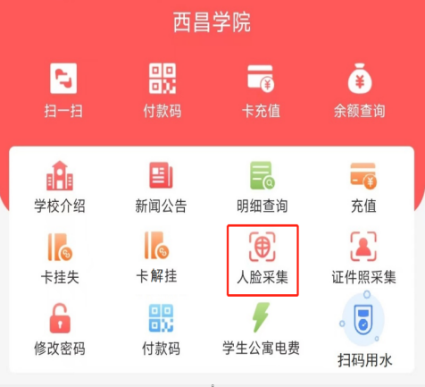 点击【人脸采集】可以在线采集人脸,完成后可在食堂消费机通过刷脸消费。