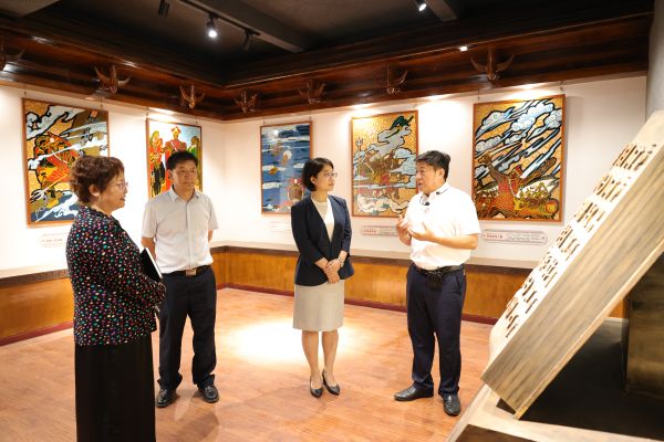 中心主任沙马打各陪同白洁院长参观了彝族文化研究中心展厅,并向白洁院长详细介绍了中心展厅的建设情况和展厅展品的彝族文化寓意。