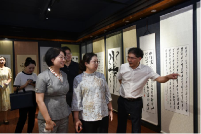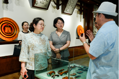 调研组一行参观了彝族文化研究中心的漆器展厅、支格阿鲁展厅、彝文书法展厅和彝族服饰展厅。中心杰觉伊泓博士为调研组详细介绍了各展厅的建设情况以及展品所蕴含的文化寓意。