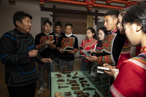 彝族漆器展厅学生在认真笔记