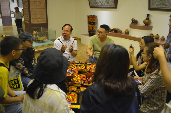 中心工作人员杰觉伊泓为学员们讲解彝族漆器