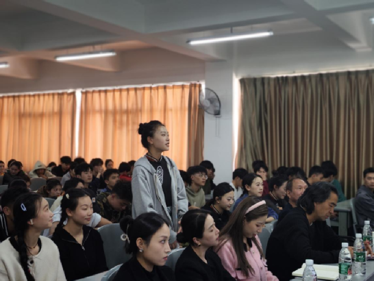 何川教授以其丰富的舞蹈创作经验和深厚的学术造诣,为同学们带来了一场充满启发和教益的讲座。他分享了自己在舞蹈创作过程中的心得体会,让学生们深入了解了舞蹈创作的内涵和技巧。何教授表示,“用舞蹈艺术,对传统文化和民族立意进行现代吟唱,是一种独具挑战又充满审美张力的精神。”