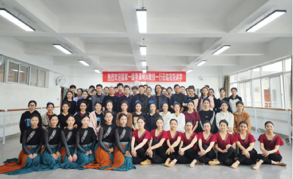 何教授一行还参观了舞蹈教室,观看了学生们的专业组合表演,并对他们的表演进行了点评。