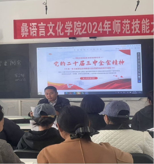 为深入学习贯彻党的二十届三中全会精神,提升学生党员的政治理论水平和党性修养,彝语言文化学院学生党支部于2025年3月4日集中学习了党的二十届三中全会精神。学生党支部书记沙马阿木同志主持会议。