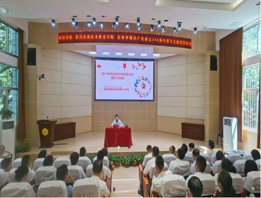 为庆祝中国共产党成立104周年,扎实推进深入贯彻中央八项规定精神学习教育,以铸牢中华民族共同体意识为主线,传承中华优秀传统文化,进一步提升党组织的凝聚力、战斗力和号召力,推进高质量党建引领高质量发展,6月27日下午,西昌学院与四川应用技术职业学院联合开展了以“淬炼党性守初心 实干担当践使命”为主题的党日活动。活动在西昌学院邛海校区举行,西昌学院党委常委、宣传部部长、统战部部长沈良杰同志,四川应用技术职业学院党委副书记、执行校长蔡兵同志以及两校党员干部及党员代表100余人参加活动。彝语言文化学院教师党支部主办本次活动,由彝语言文化学院党委书记陶际恒同志主持。